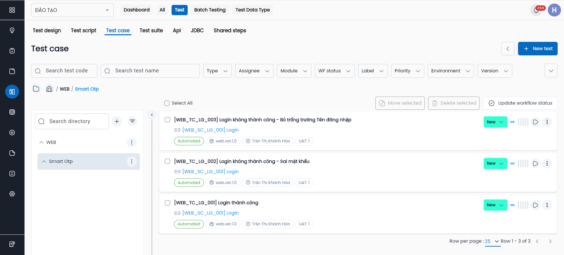 Khái niệm: Test Case là đơn vị kiểm thử nhỏ nhất, mô tả điều kiện đầu vào, các bước thực hiện, kết quả mong đợi và trạng thái thực tế
