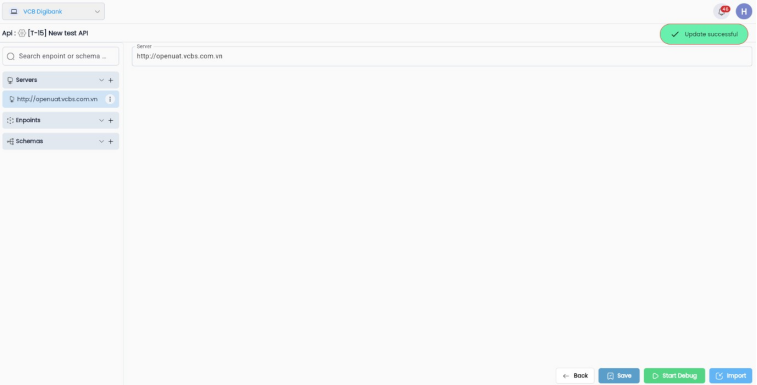 Bước 3: Click “Save”, hệ thống thông báo “Create successful” và điều hướng đến màn hình config API