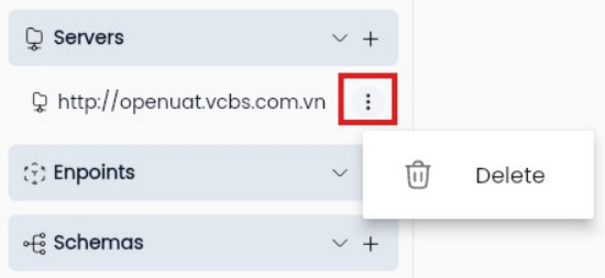 Search: Chức năng cho phép người dùng tìm kiếm các Endpoint hoặc Schema name |