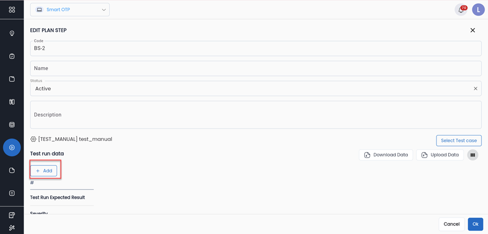 • Trong trường hợp là testcase manual, người dùng click vào add để update/ select data của test case.