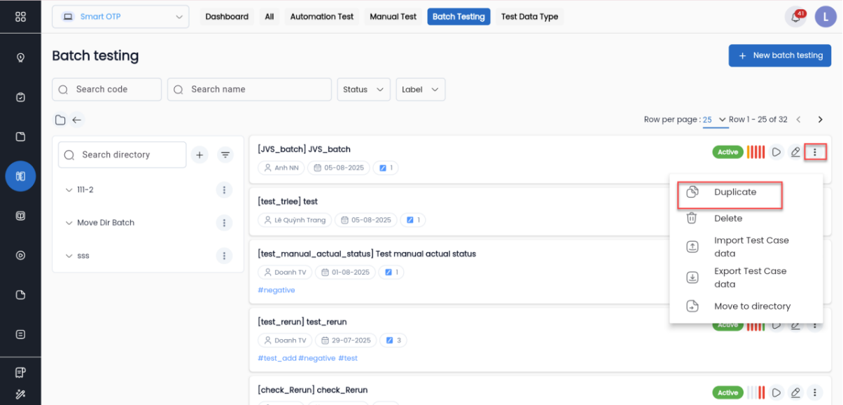 Ngoài ra, có thể thực hiện tạo batch cho version mới thông qua chức năng Duplicate batch của version trước đó.