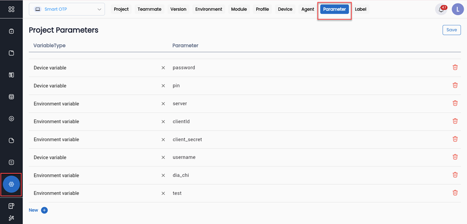 Bước 2: Nhấn New parameter để tạo thêm tham số. Không giới hạn số lượng tham số mỗi lần tạo.