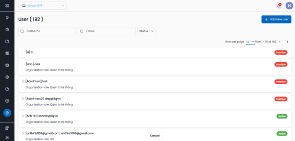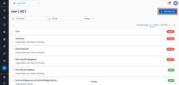 Hệ thống hiển thị danh sách toàn bộ User trên hệ thống.