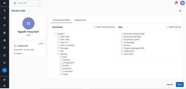 1.1.5.2 Cập nhật phân quyền cho thành viên trong dự án