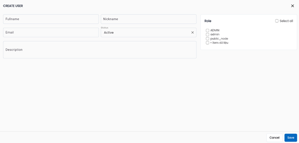 Là danh sách các vai trò có thể đảm nhận của user trong dự án, người dùng thực hiện click chọn các vai trò phù hợp đối với user. Có thể chọn nhiều vai trò cho 1 User |