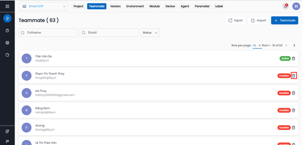 Để xóa 1 thành viên khỏi dự án trong Centralize Automation Testing Suite, thực hiện các bước như sau: