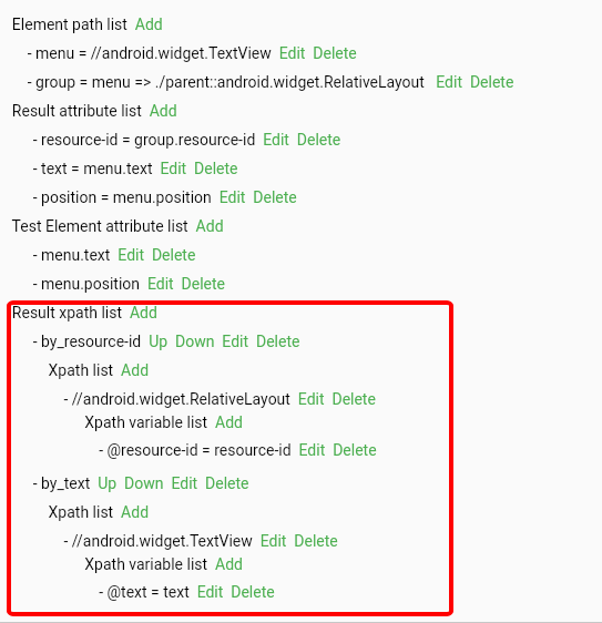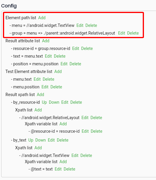 Cấu hình công thức để hệ thống tự động sinh ra XPath định danh cho các element tìm được.