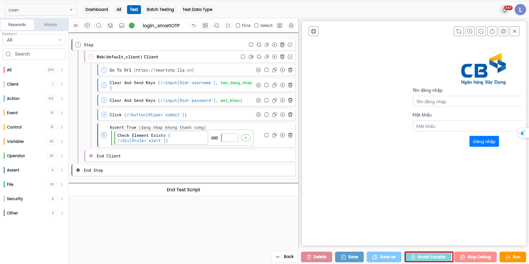 - Lợi ích: Bạn chỉ cần định nghĩa locator cho các phần tử này một lần trong Shared Step. Các kịch bản khác chỉ cần gọi lại Shared Step đó thông qua keyword Action Call. Điều này giảm thiểu việc nhiều người cùng khai báo locator cho cùng một nhóm chức năng.